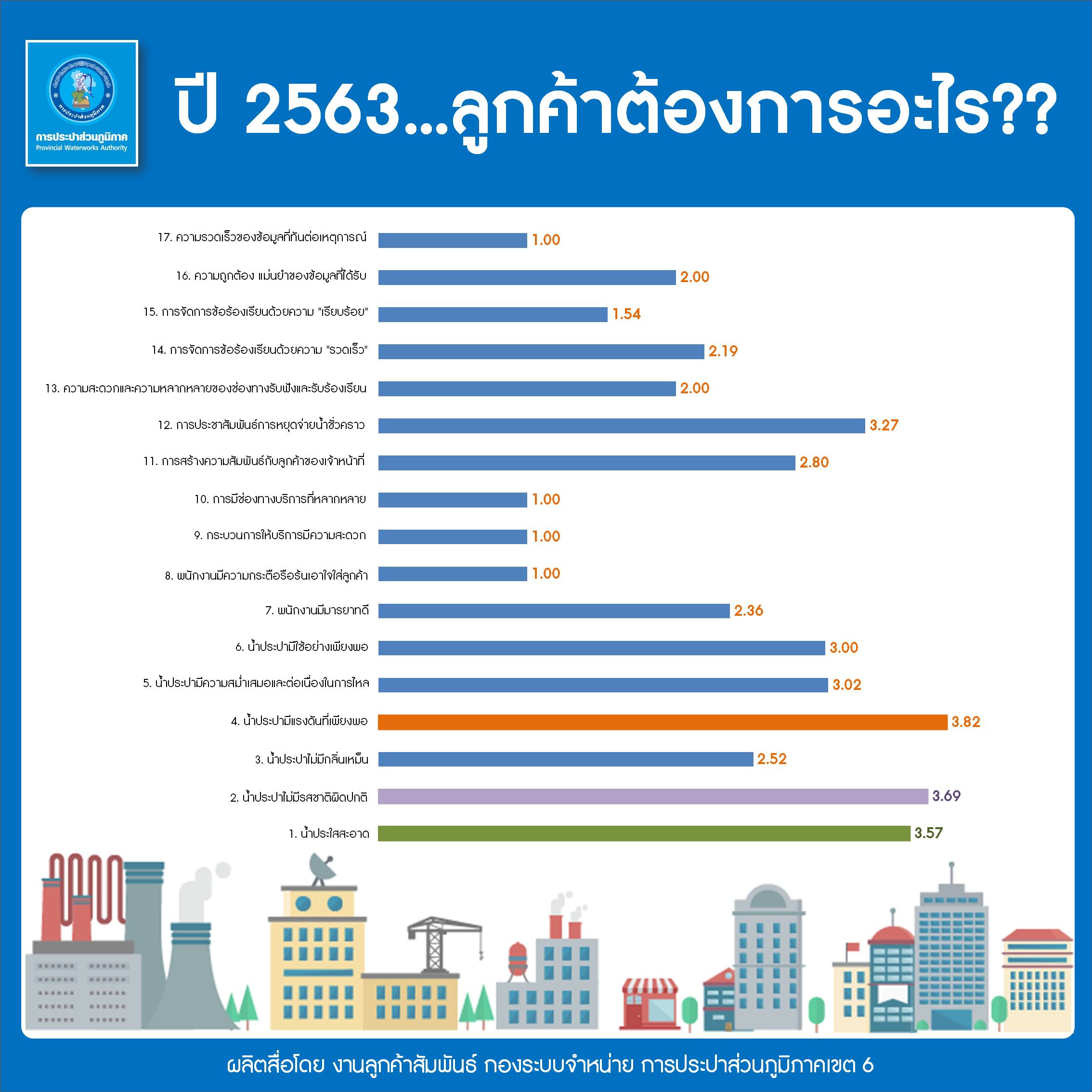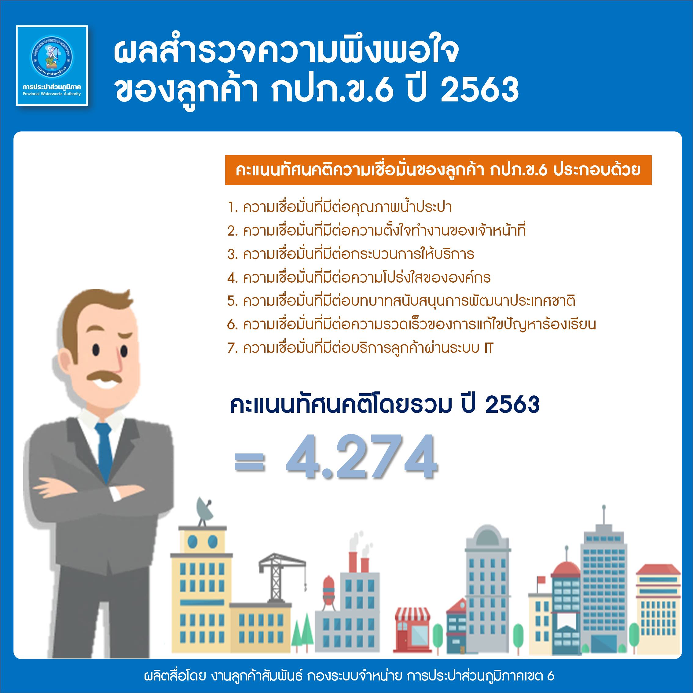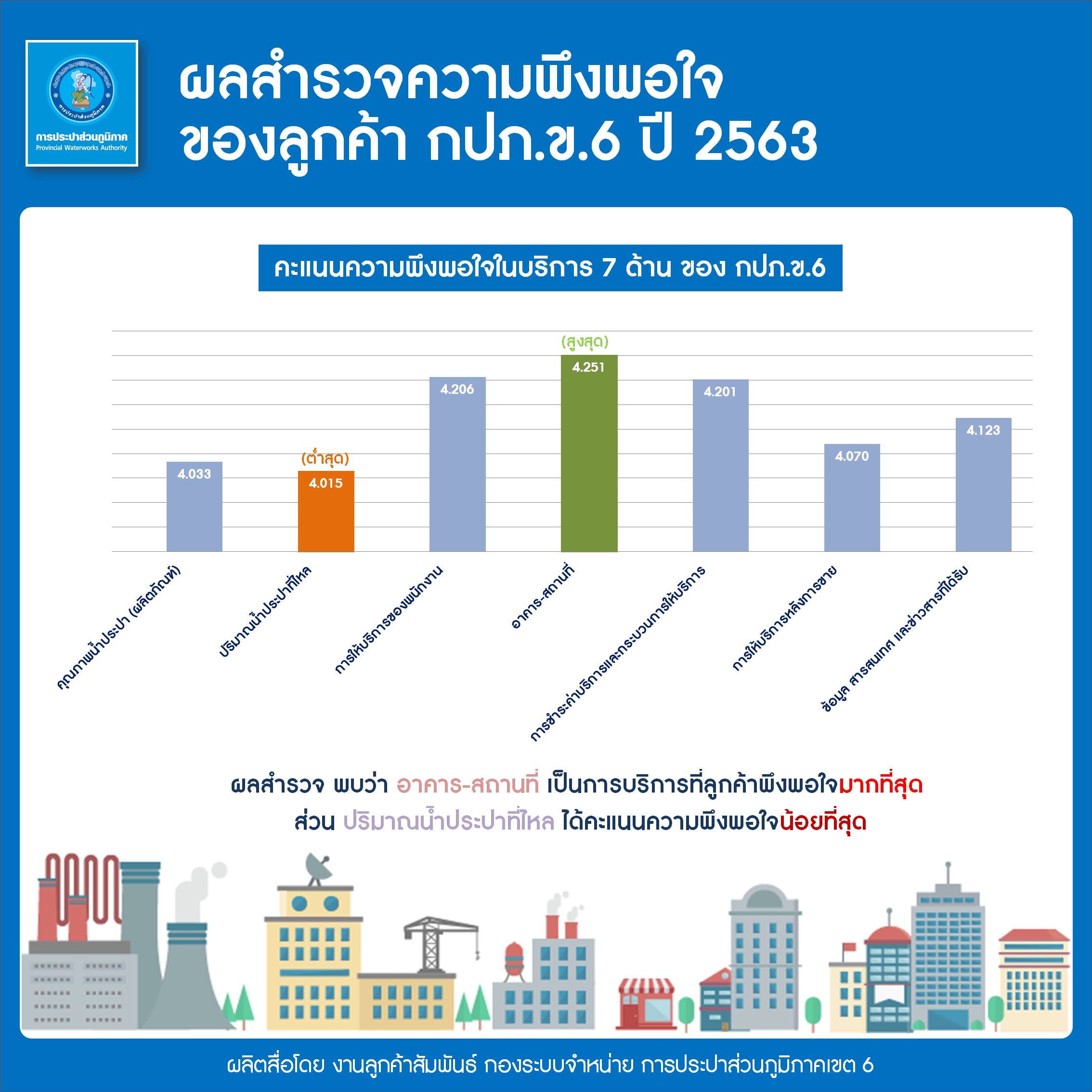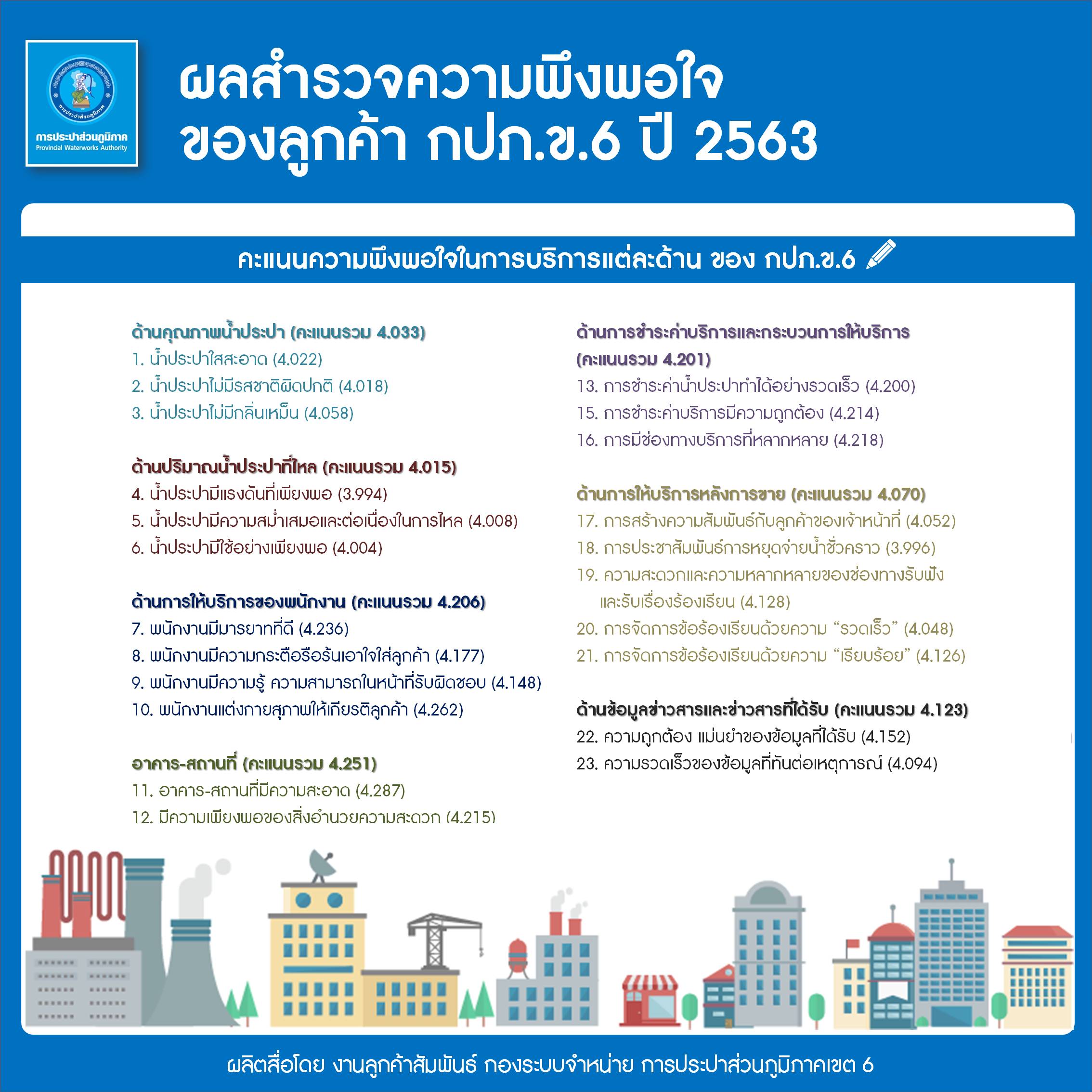Download ผลสำรวจความพึงพอใจการให้บริการ ปีงบประมาณ 2563 การประปาส่วนภูมิภาคเขต 6(107KB)