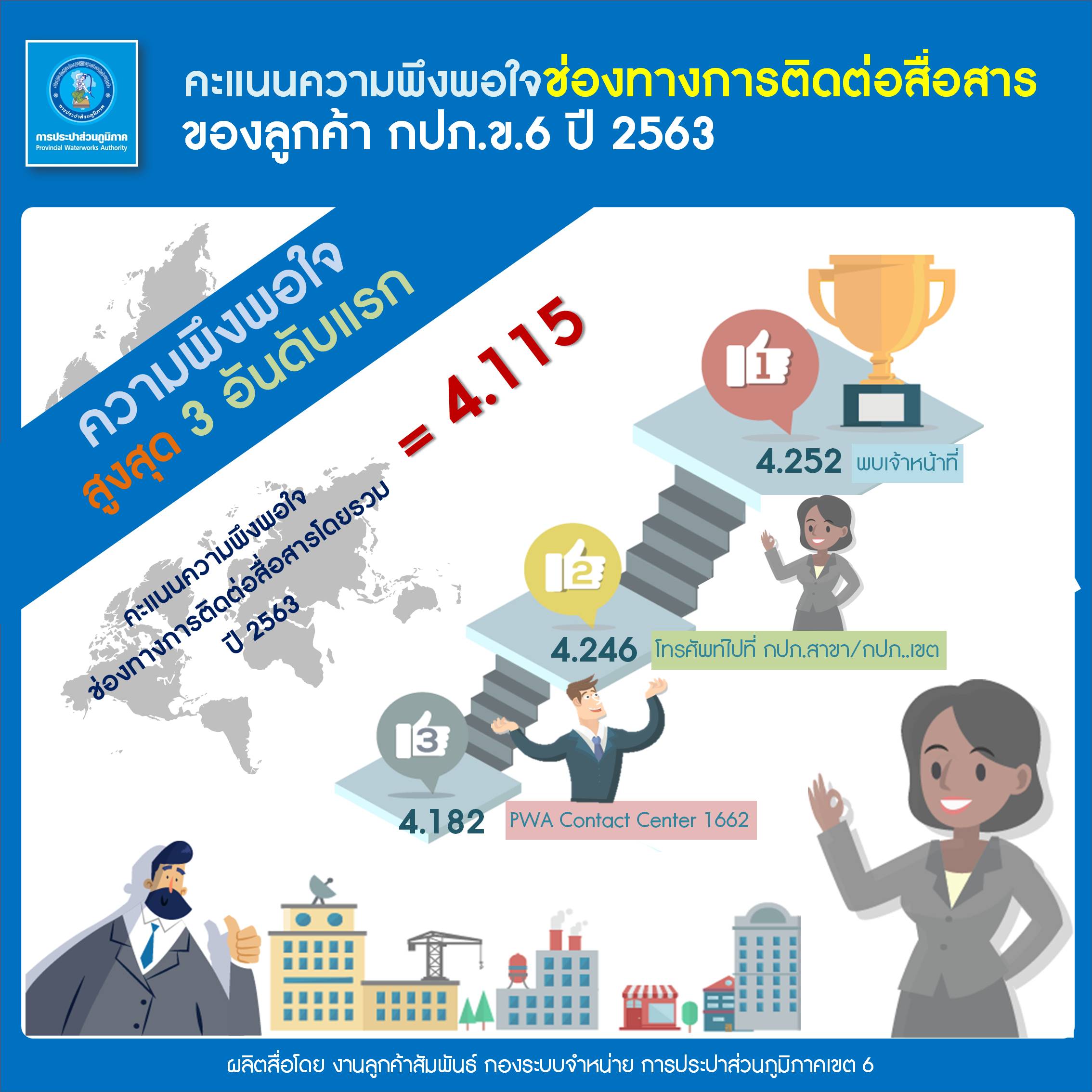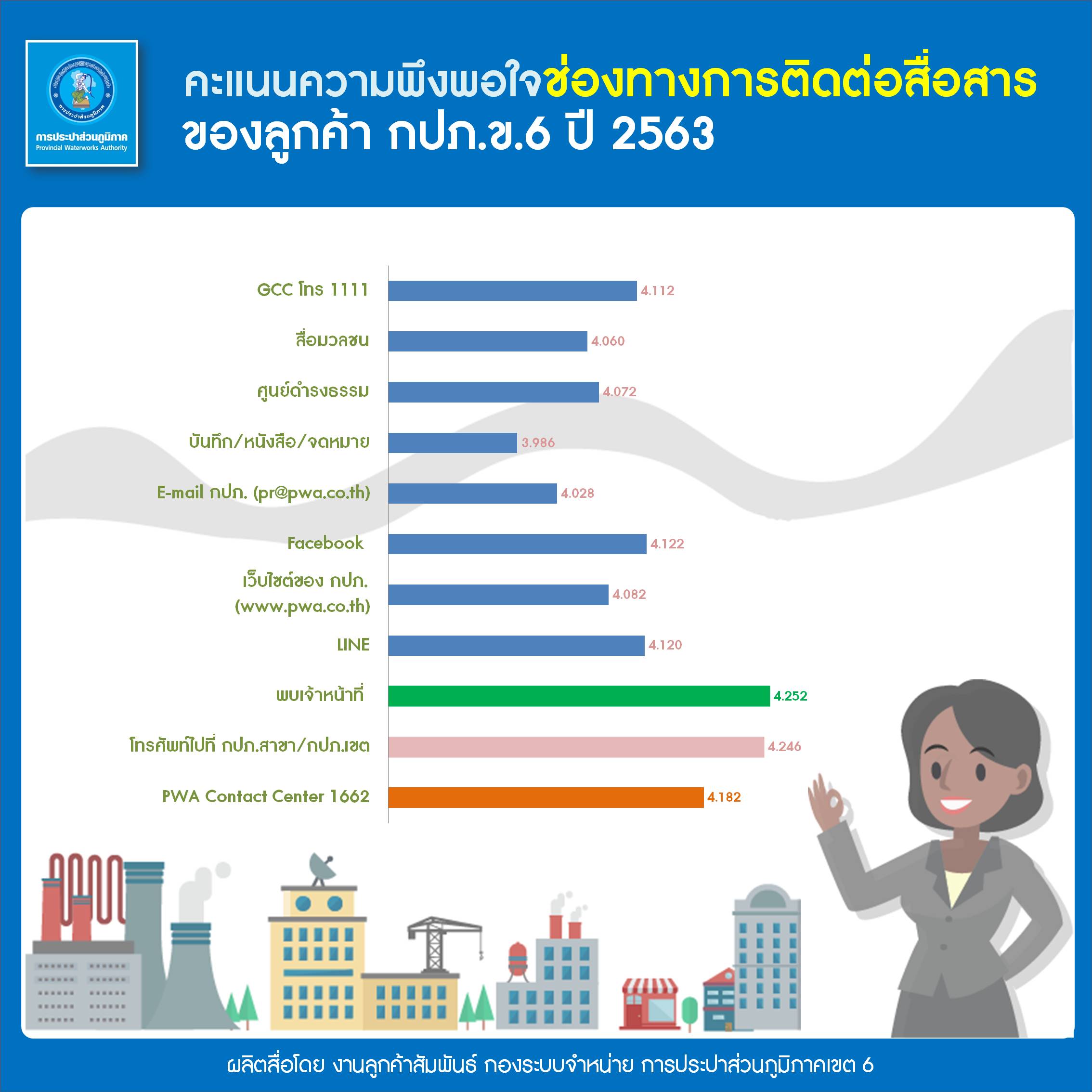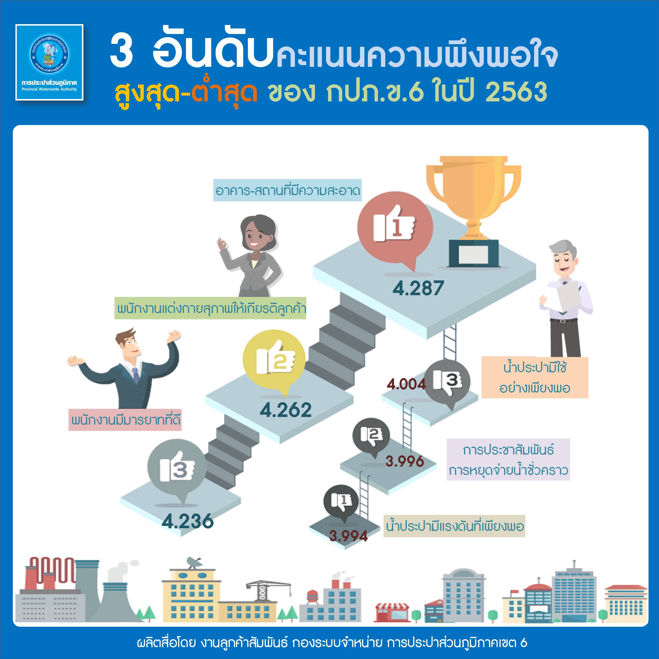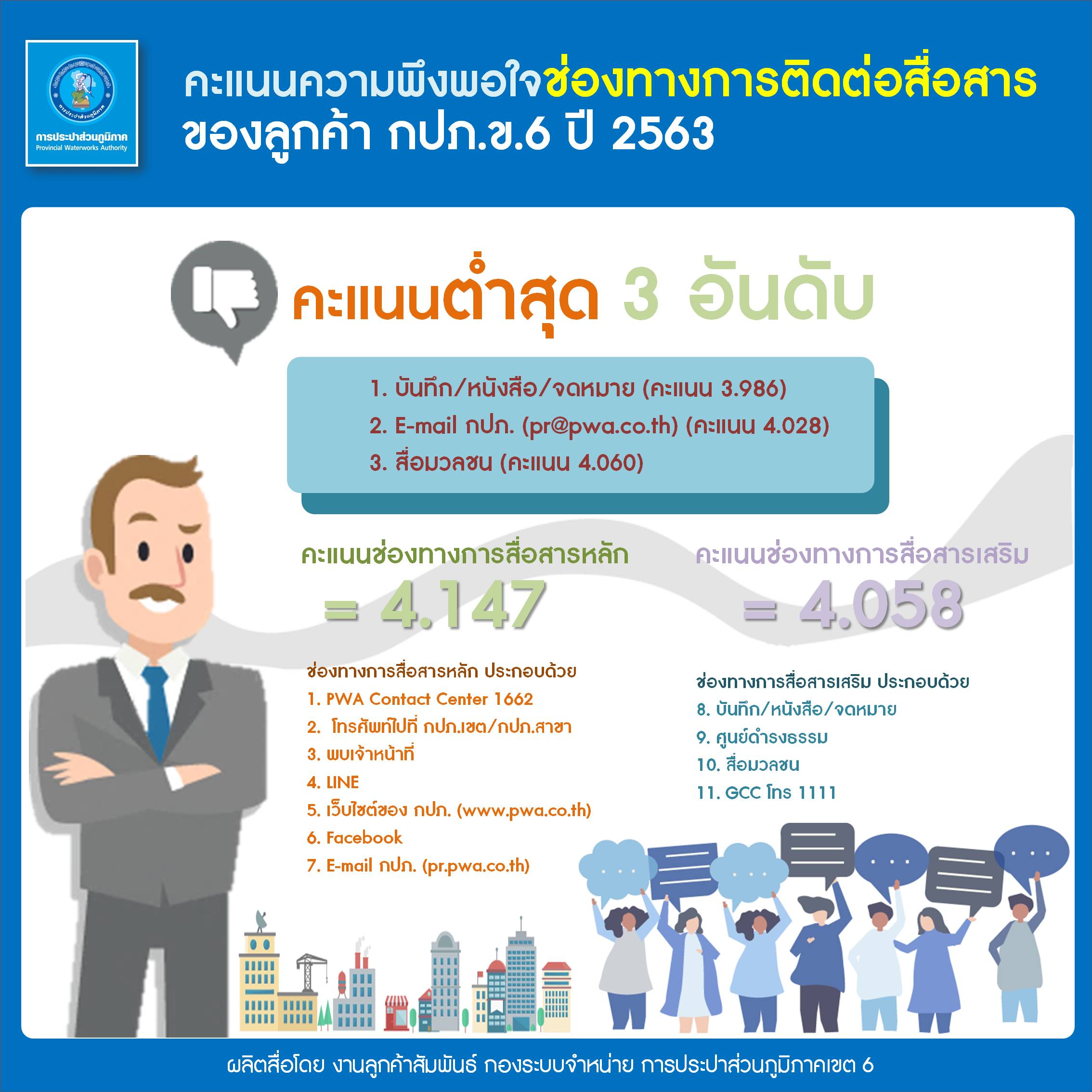 Download ผลสำรวจความพึงพอใจการให้บริการ ปีงบประมาณ 2563 การประปาส่วนภูมิภาคเขต 6(107KB)