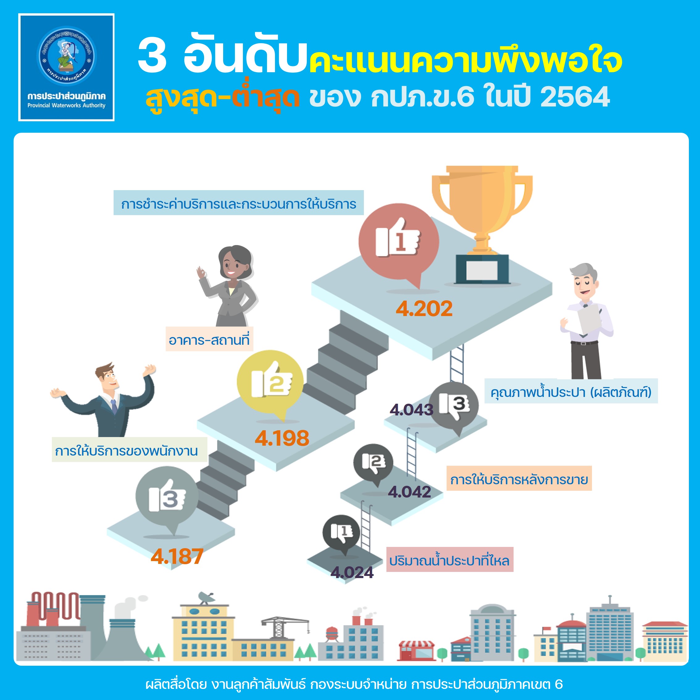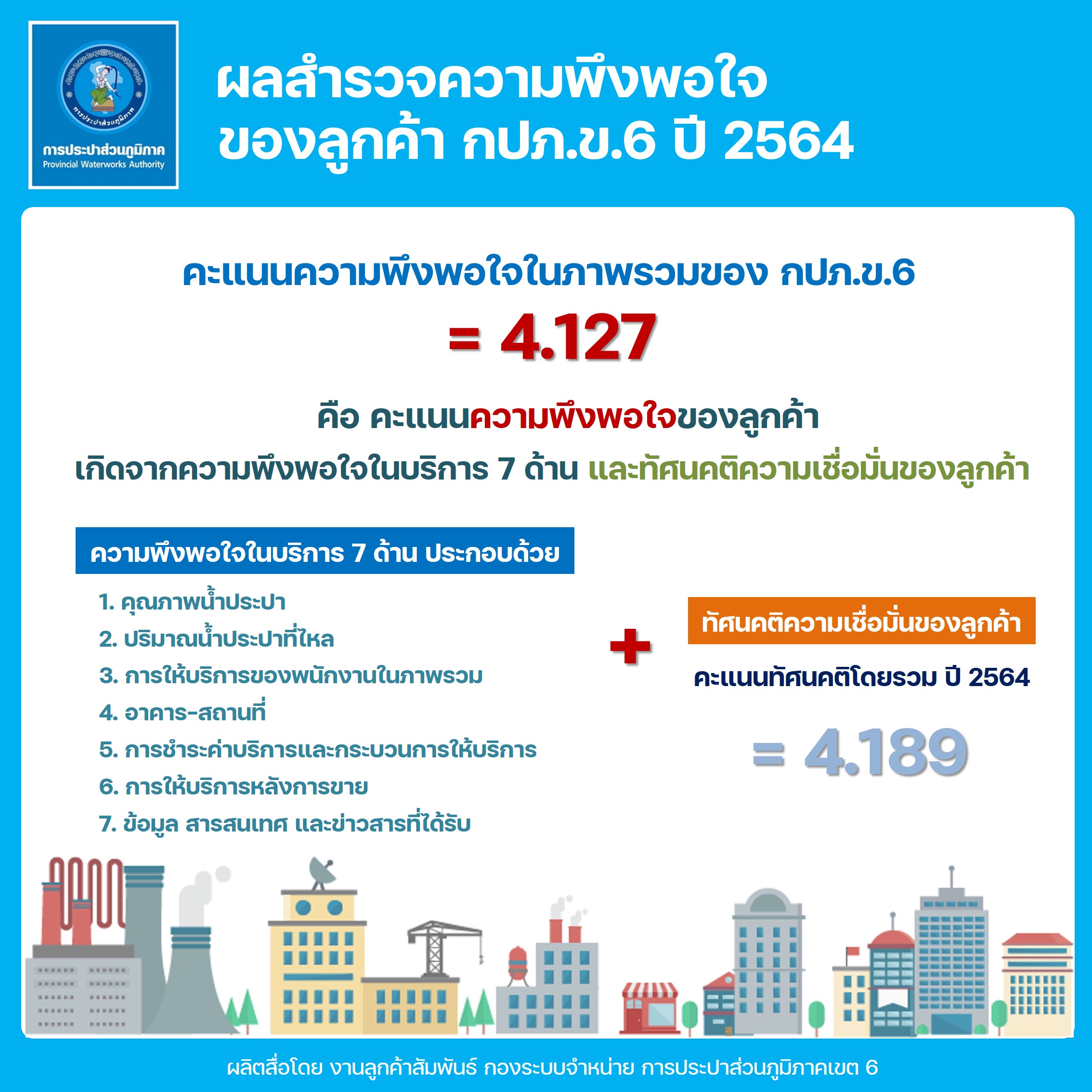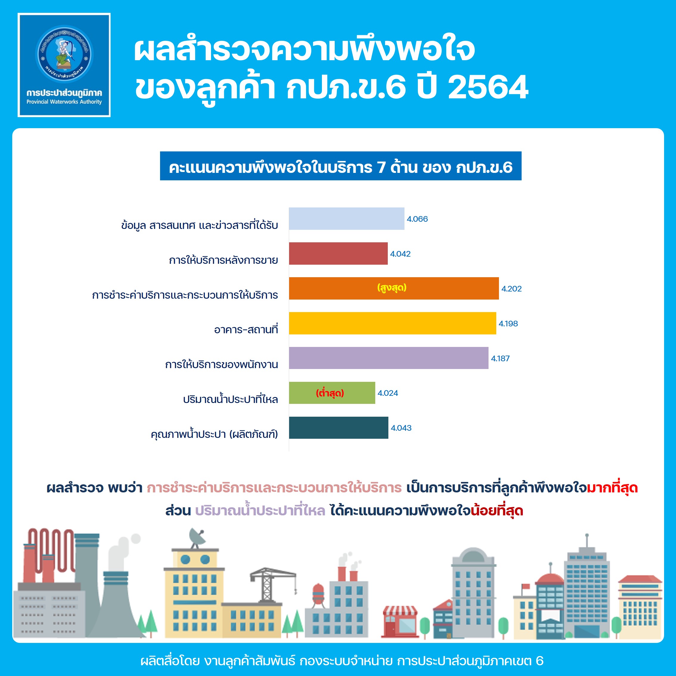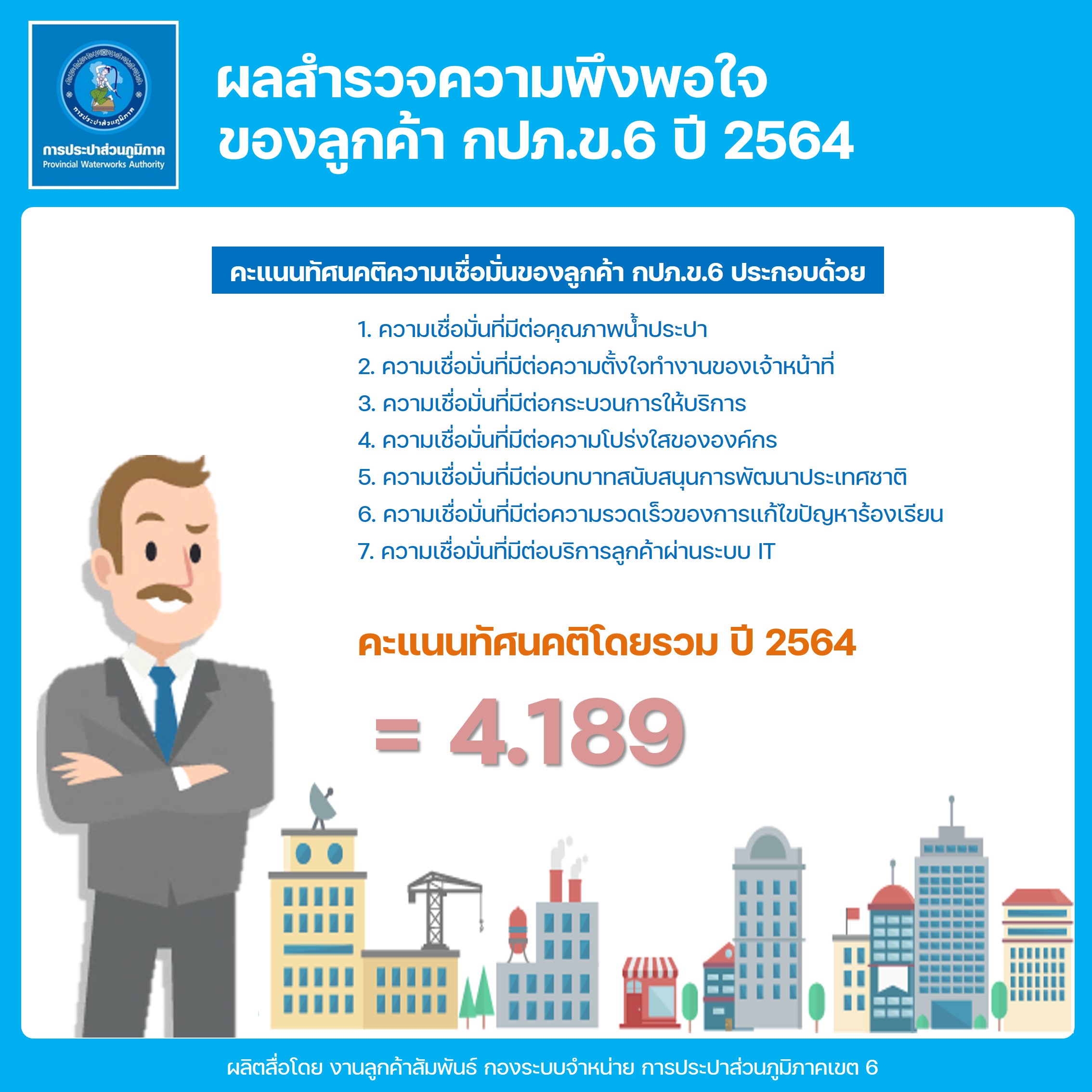 Download ผลสำรวจความพึงพอใจการให้บริการ ปีงบประมาณ 2564 การประปาส่วนภูมิภาคเขต 6(117KB)