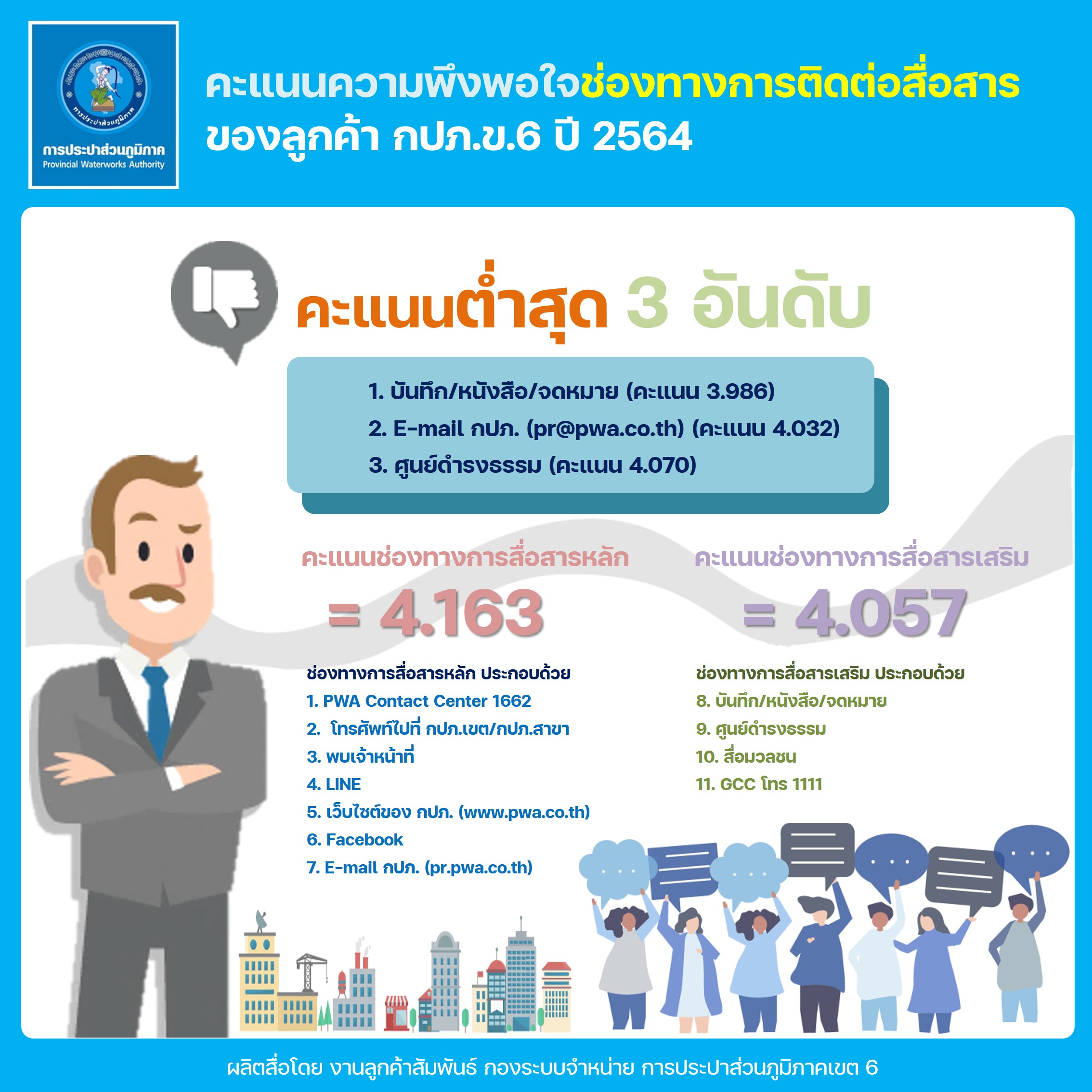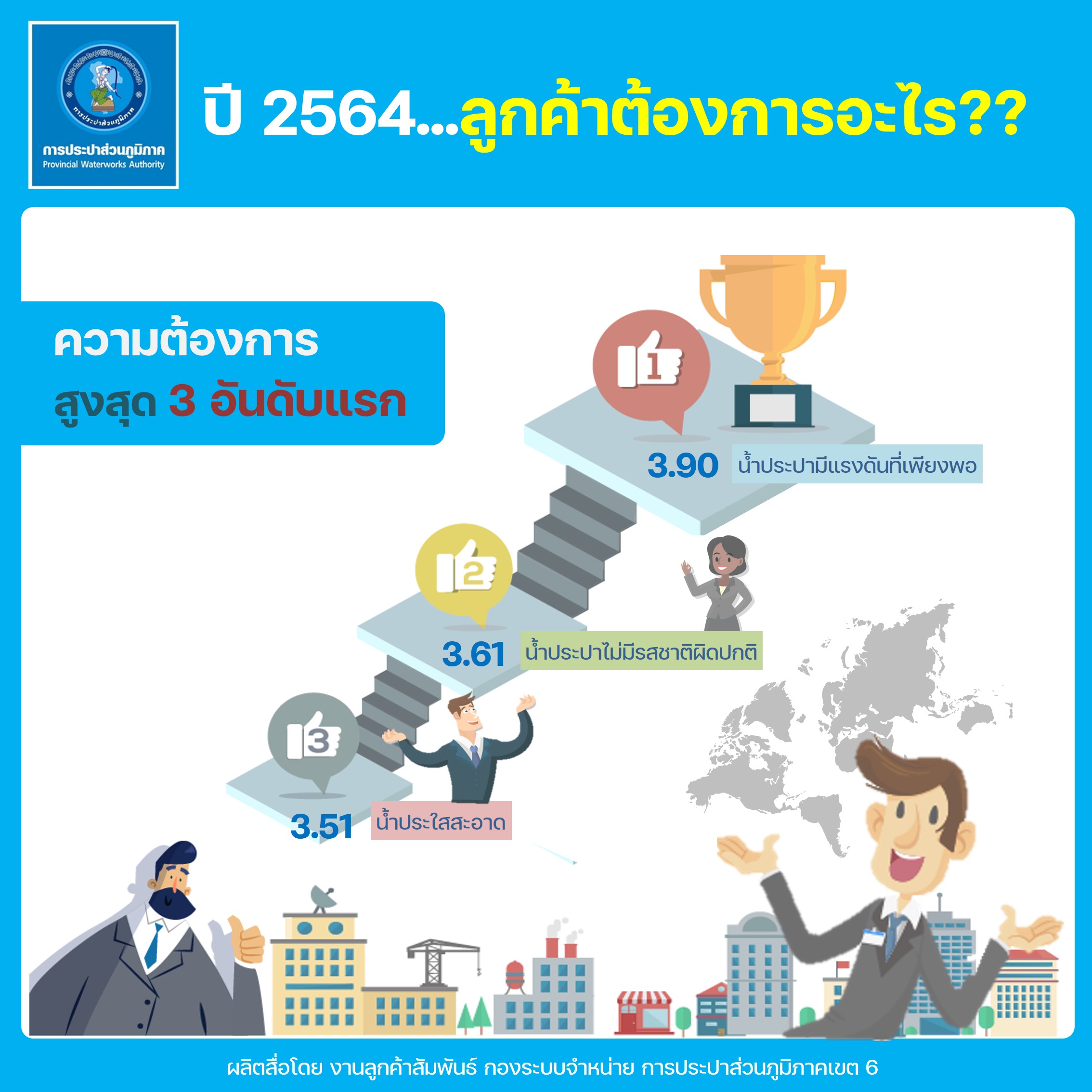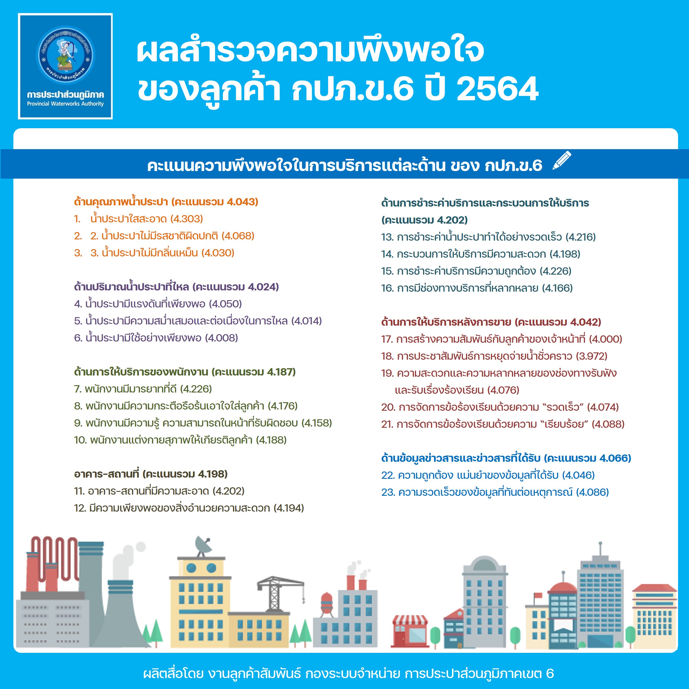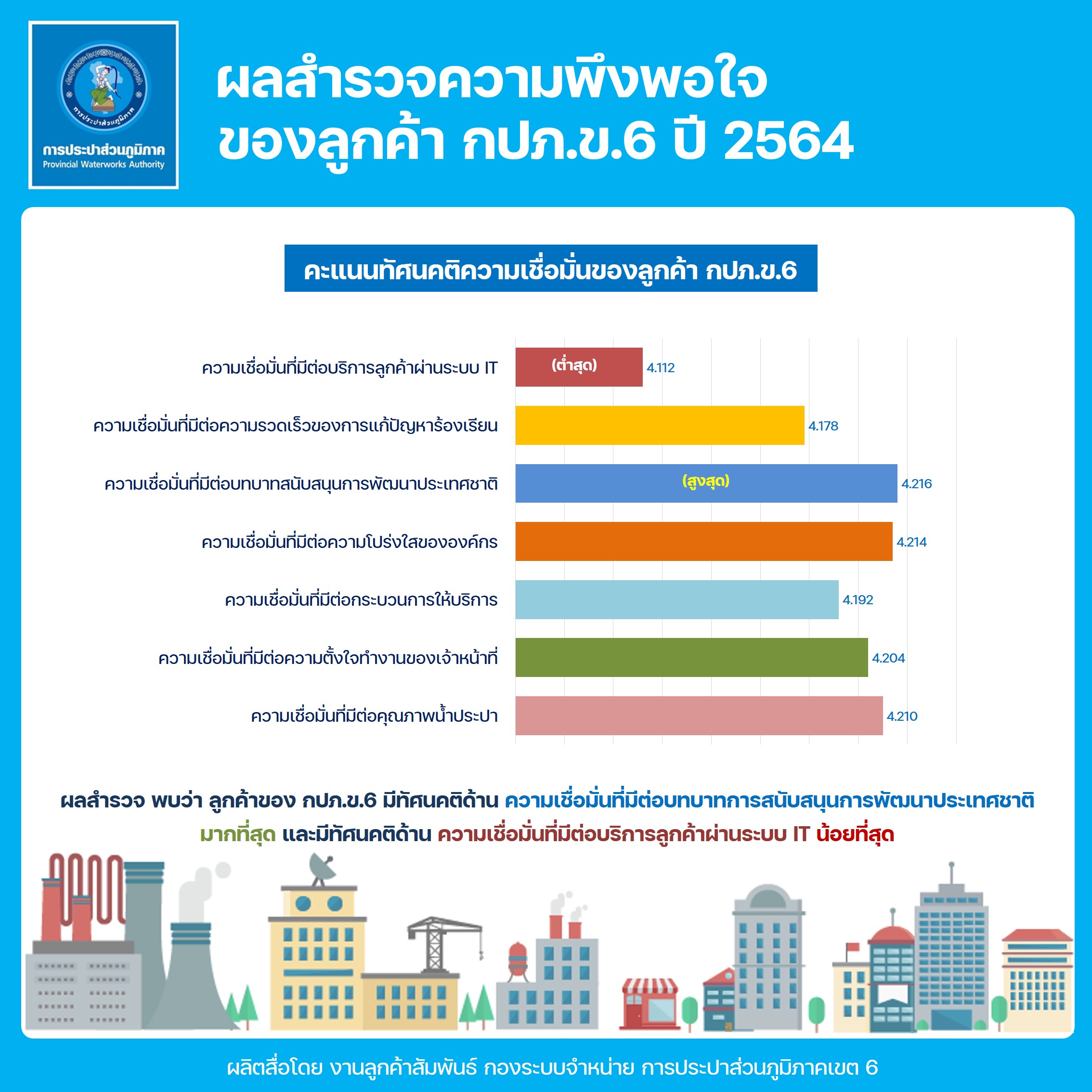 Download ผลสำรวจความพึงพอใจการให้บริการ ปีงบประมาณ 2564 การประปาส่วนภูมิภาคเขต 6(117KB)
