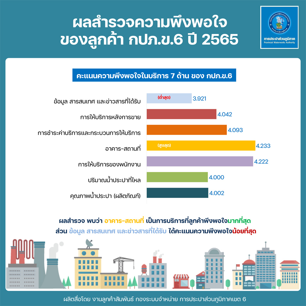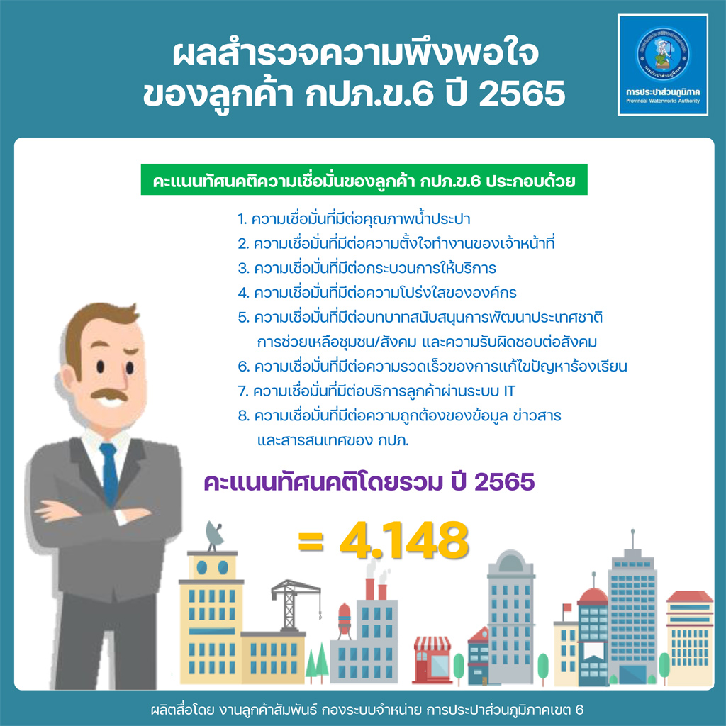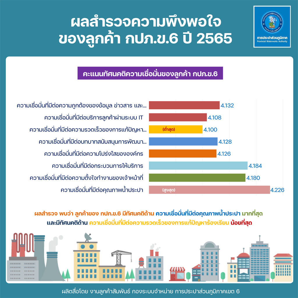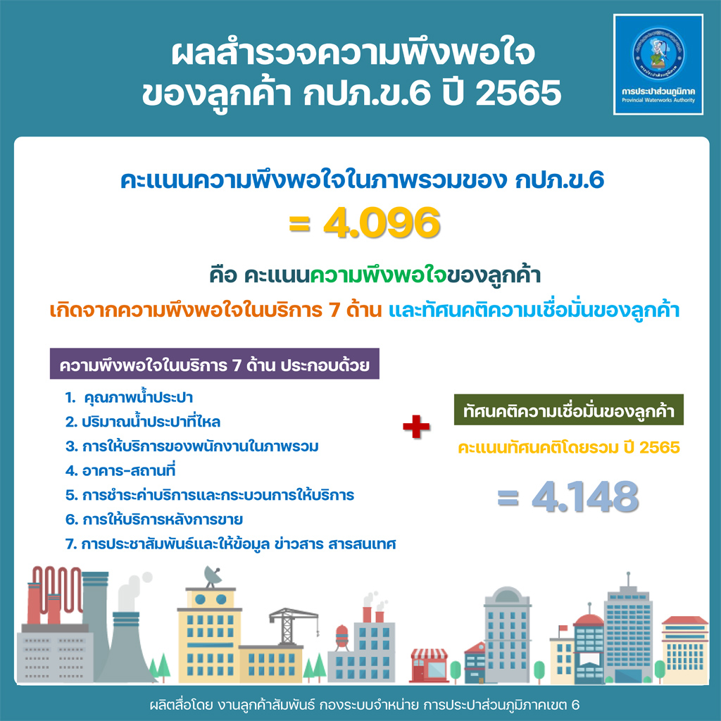 Download ผลสำรวจความพึงพอใจการให้บริการ ปีงบประมาณ 2565 การประปาส่วนภูมิภาคเขต 6(127KB)
