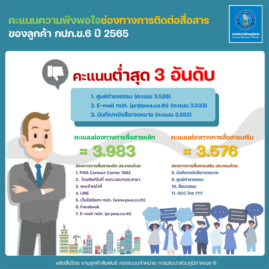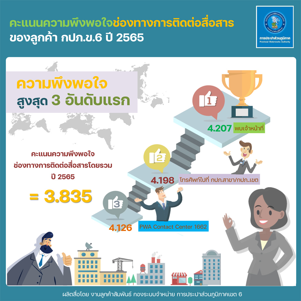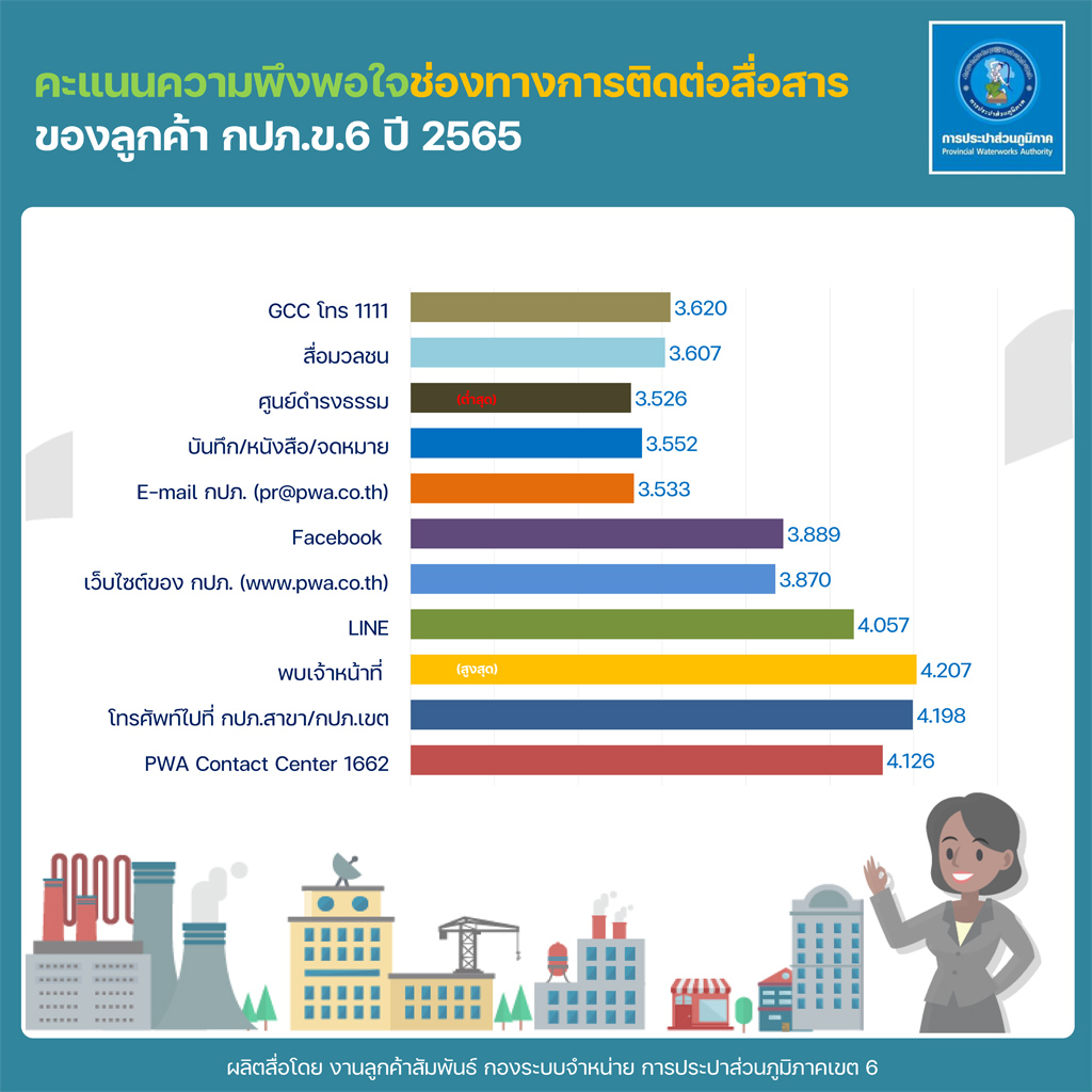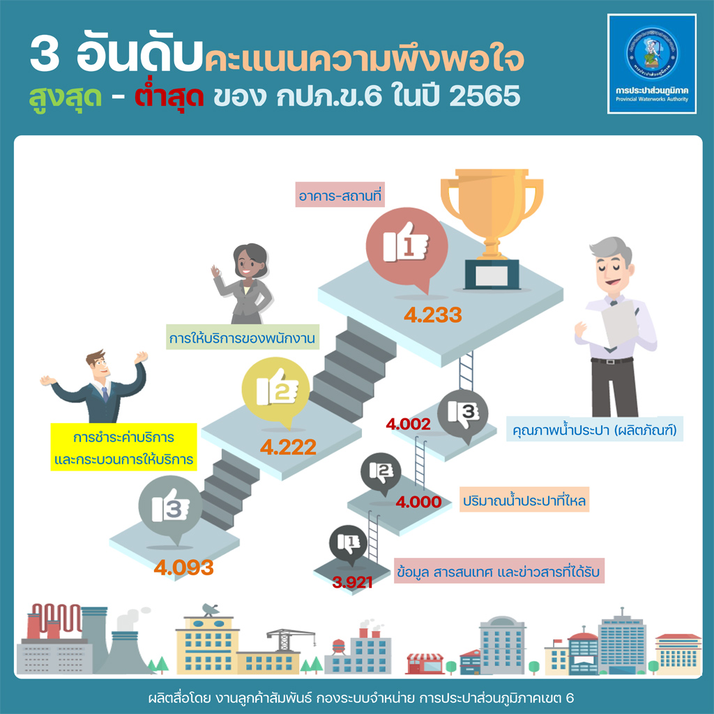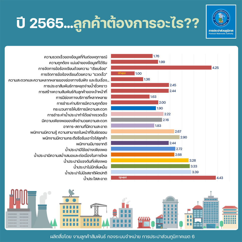 Download ผลสำรวจความพึงพอใจการให้บริการ ปีงบประมาณ 2565 การประปาส่วนภูมิภาคเขต 6(127KB)